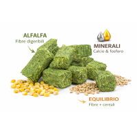 Ein faserreicher Würfel aus Luzerne und Getreide, entwickelt für eine praktische, ausgewogene und schmackhafte Pferdefütterung.