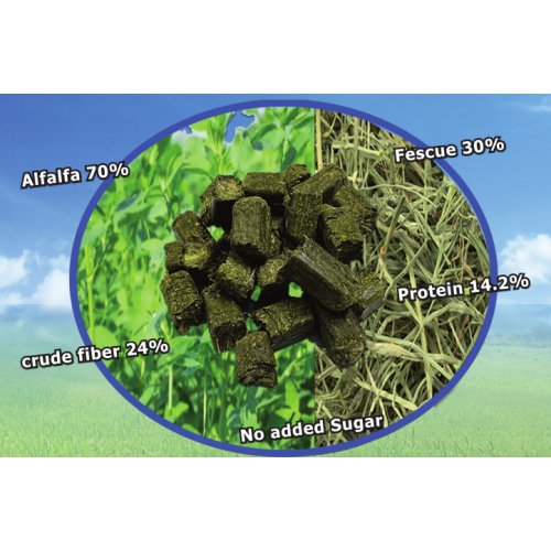 70% alfalfa, naturally rich in proteins, essential amino acids and micronutrients