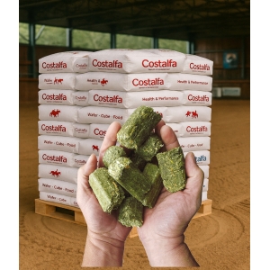 Premium luzerne, verrijkt met vitamines en selenium, ter ondersteuning van de prestatie, de immuniteit en het spierherstel.