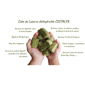 Een 100% luzerne kubus, ontwikkeld voor een natuurlijke, vezelrijke en goed verteerbare voeding van het paard.