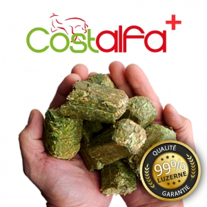 1 kg de luzerne déshydratée = 1,7 kg de foin consommé /1 kg di erba medica disidratata = 1,7 kg di fieno consumato /1 kg getrocknete Luzerne = 1,7 kg verzehrtes Heu / 1 kg of dehydrated alfalfa = 1.7 kg of hay consumed / 1 kg gedroogde luzerne = 1,7 kg verteerd hooi.