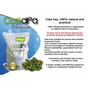 COSTALFA FÉTUQUE is een 100% vezelbrok ontwikkeld ter ondersteuning van de spijsvertering. Rijk aan lange structuurvezels (≈ 23,7 %) en zeer laag in zetmeel (≈ 2,85 %), helpt het de darmflora te stabiliseren en irritaties te verminderen. Het eenvoudige, natuurlijke profiel maakt het ideaal voor gevoelige paarden, graanarme rantsoenen en situaties met wisselende hooikwaliteit.